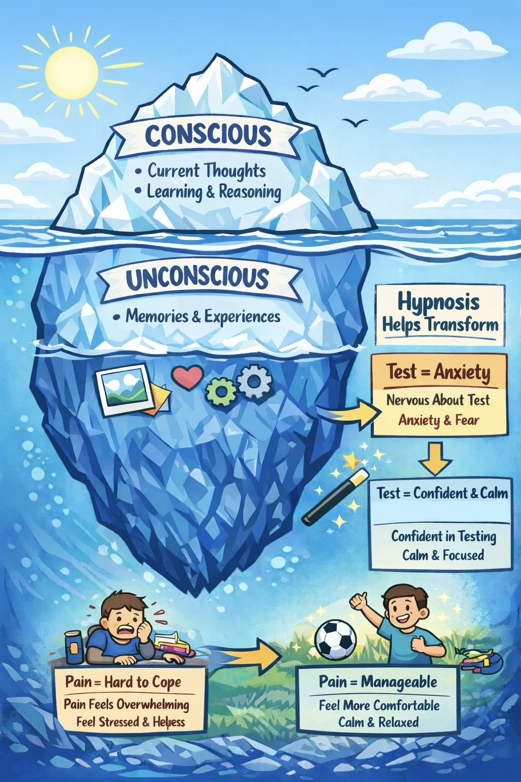 Increasing your ability to control symptoms through hypnosis can strengthen confidence and self esteem and is a skill that can be used throughout the lifetime.